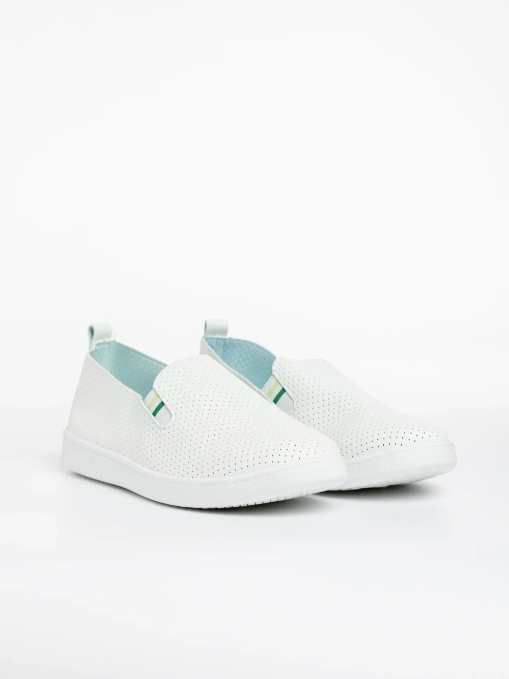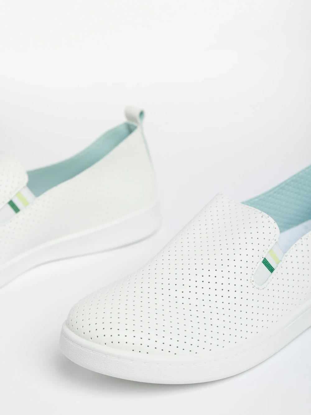Мъжки спортни обувки бели със зелено от еко кожа Amias