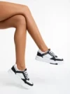 Дамски спортни обувки  черни  с бяло от еко кожа Tasnia