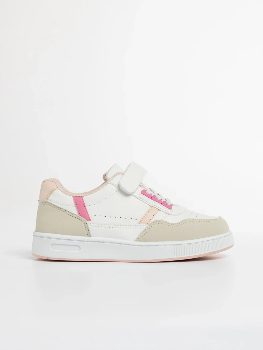 Детски спортни обувки бели с цикламено от еко кожа Omar