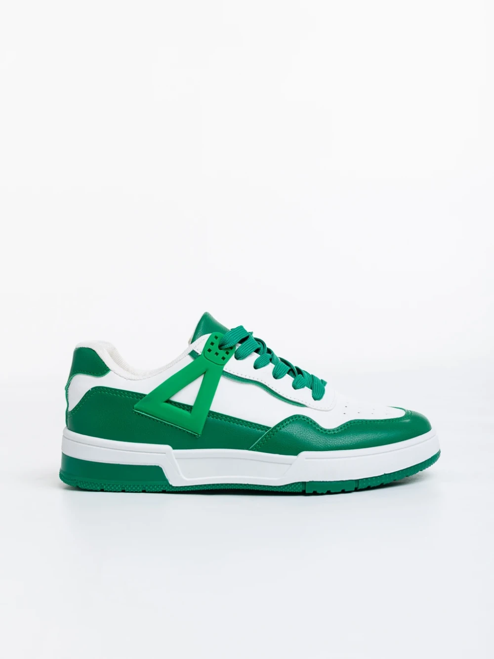 Дамски спортни обувки бели с зелено от еко кожа Milla