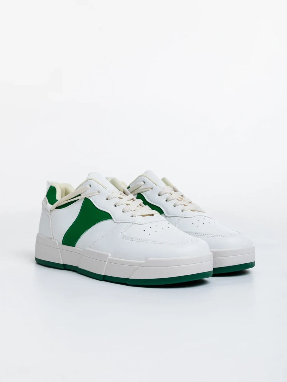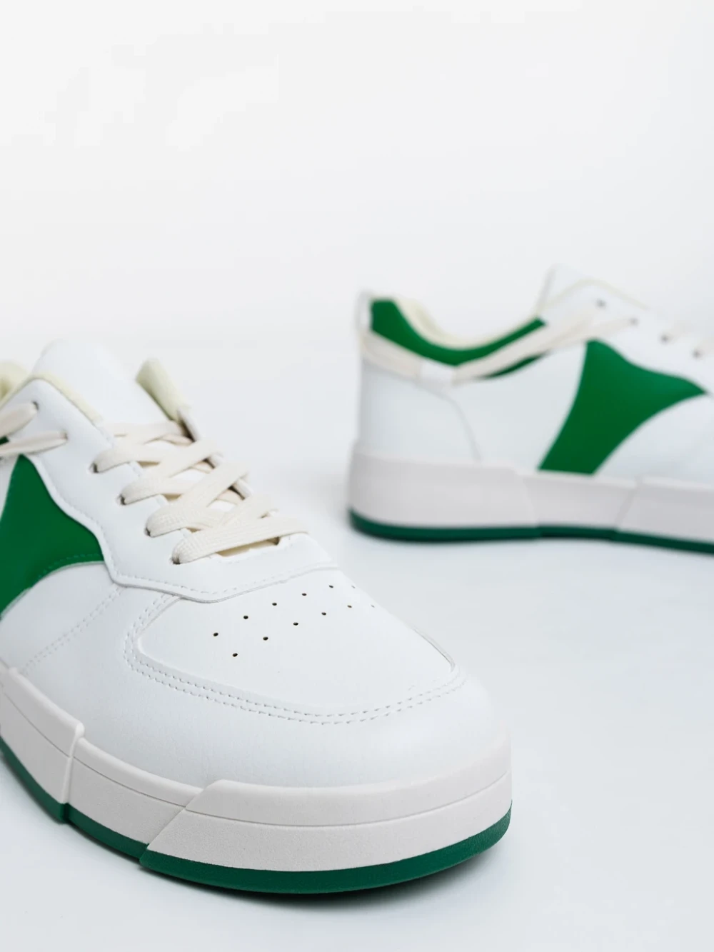 Мъжки Спортни Обувки бели със зелено от еко кожа Verdell