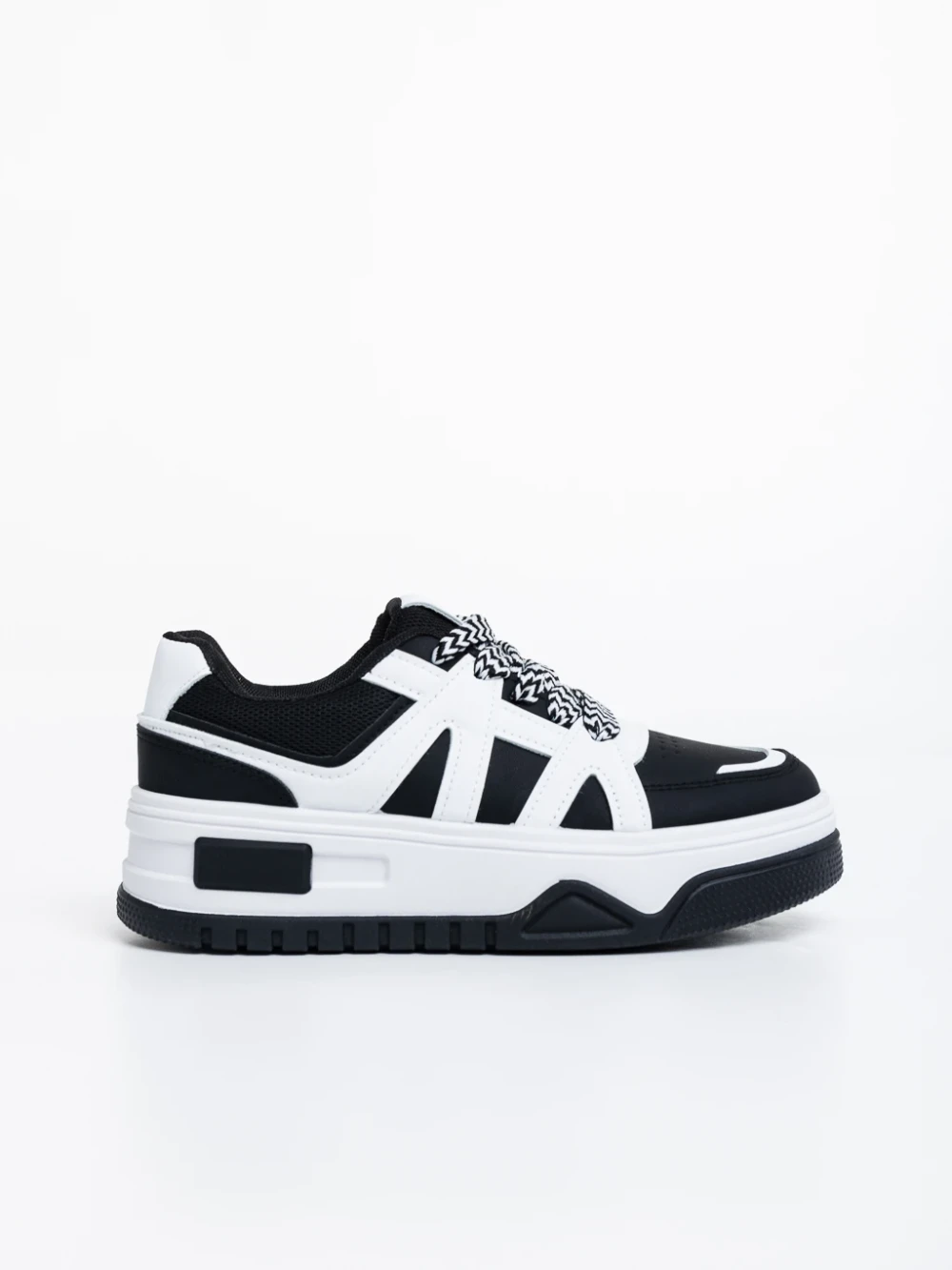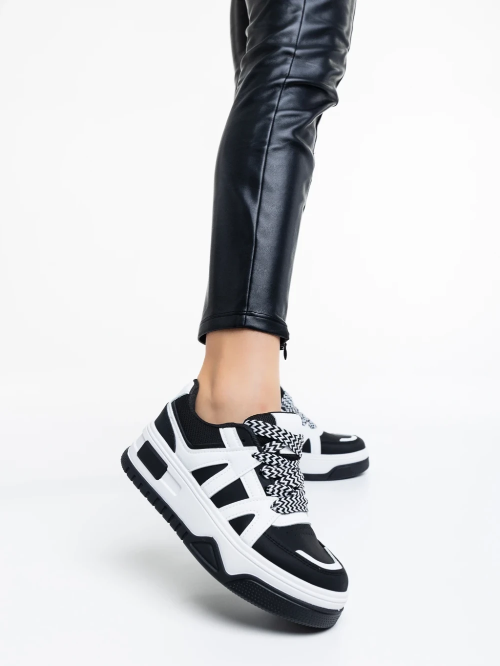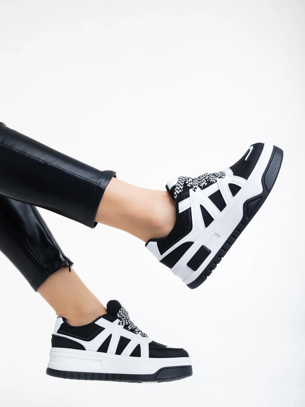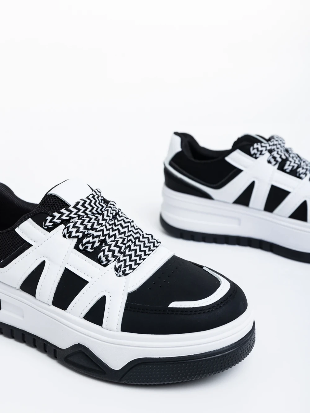 Дамски спортни обувки черни с бяло от еко кожа Daelen