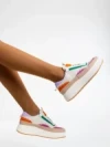 Дамски спортни обувки бели с червено от еко кожа и текстилен материал Jianna