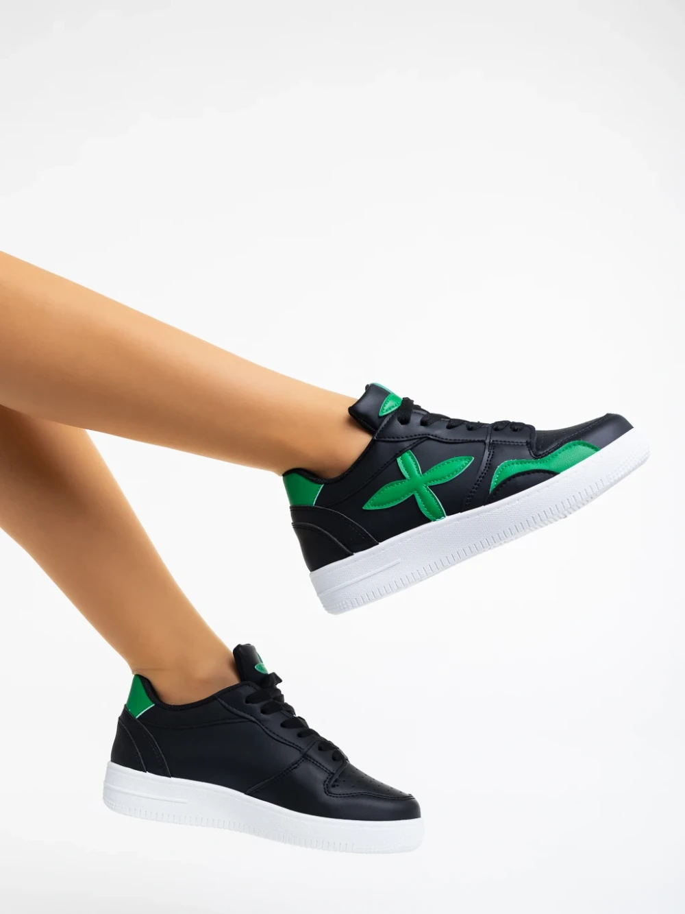 Дамски спортни обувки черно с зелено от екологична кожа Cierra