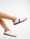 Дамски спортни обувки  бели с червено от екологична кожа Liliha