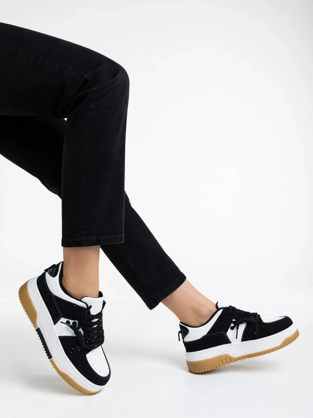 Дамски спортни обувки бели с черно от екологична кожа Rheia