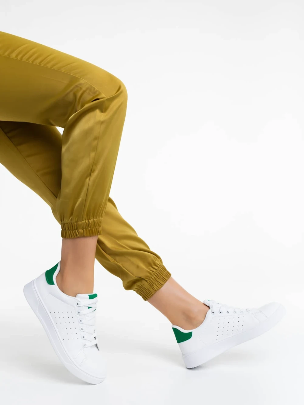 Дамски спортни обувки бели със зелено от екологична кожа Rasine
