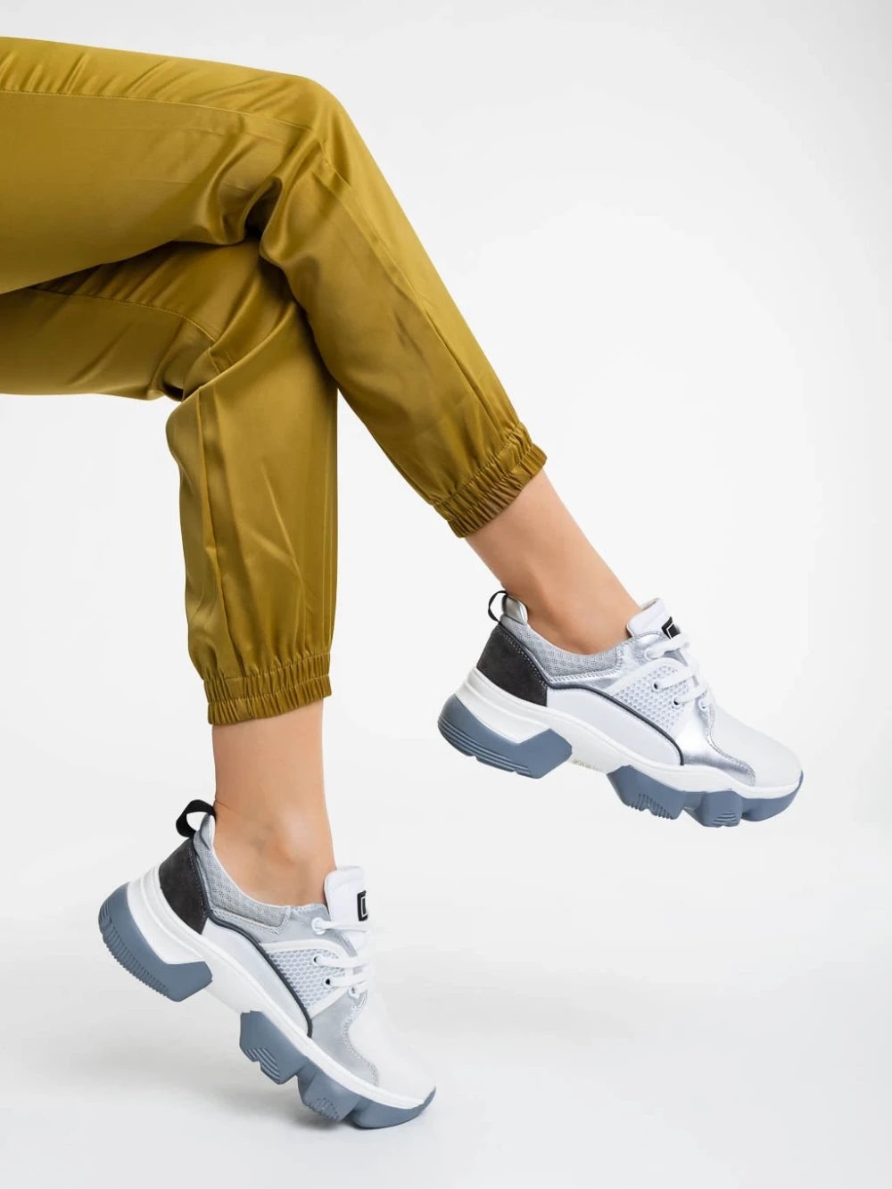 Дамски спортни обувки черни с бяло от еко кожа и текстилен материал Joandra