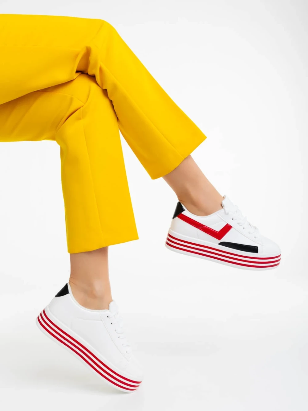 Дамски спортни обувки бели с червено от екологична кожа Gratiela Информация за продукта