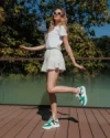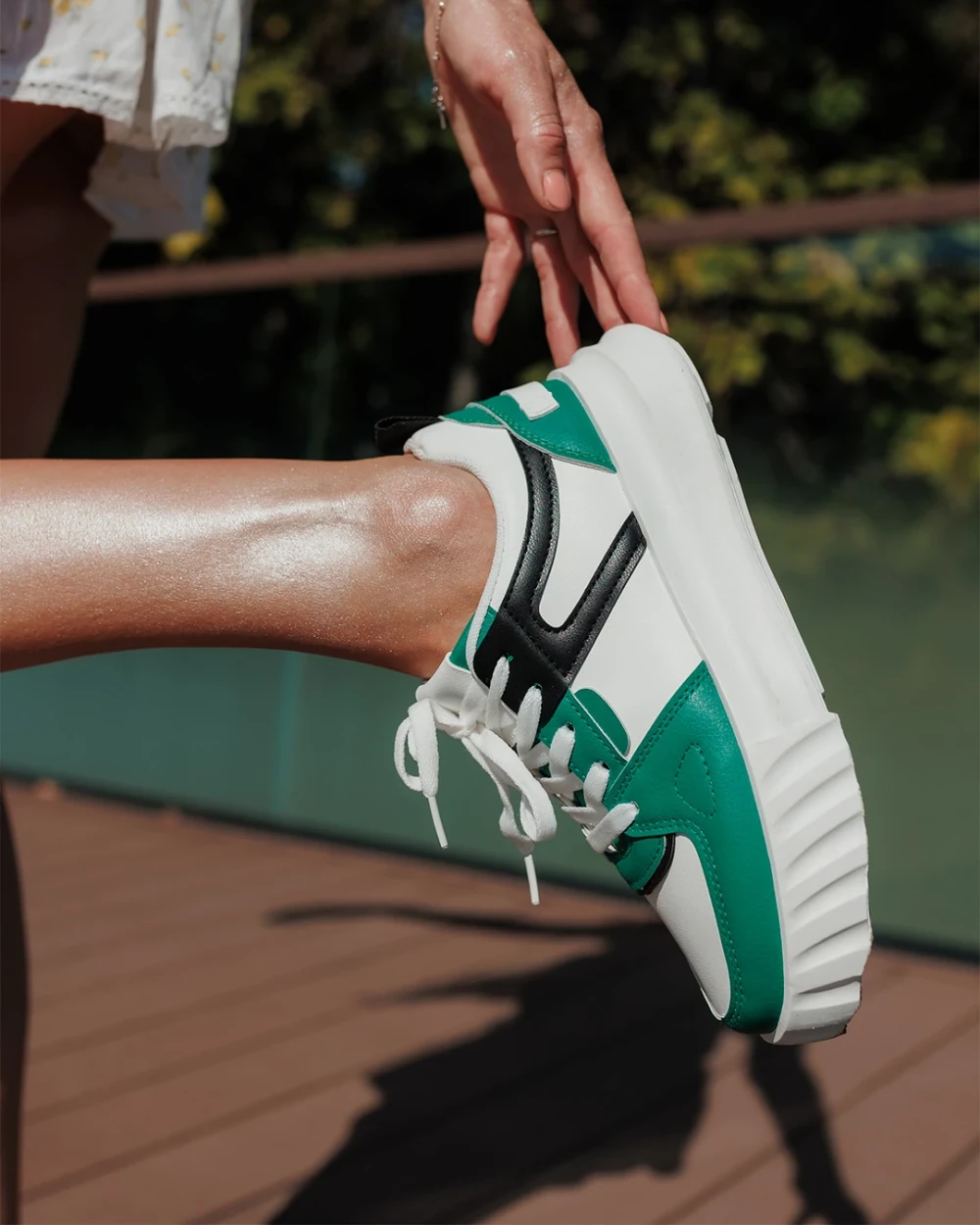 Дамски спортни обувки бели с жълто от еко кожа Milla