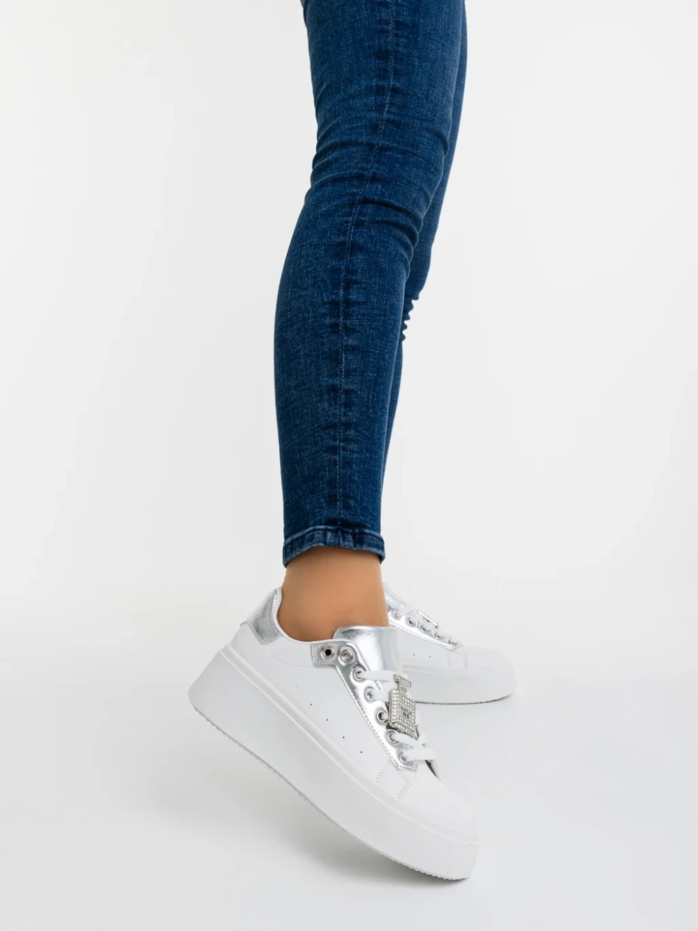Дамски спортни обувки сребристи от екологична кожа Amazera