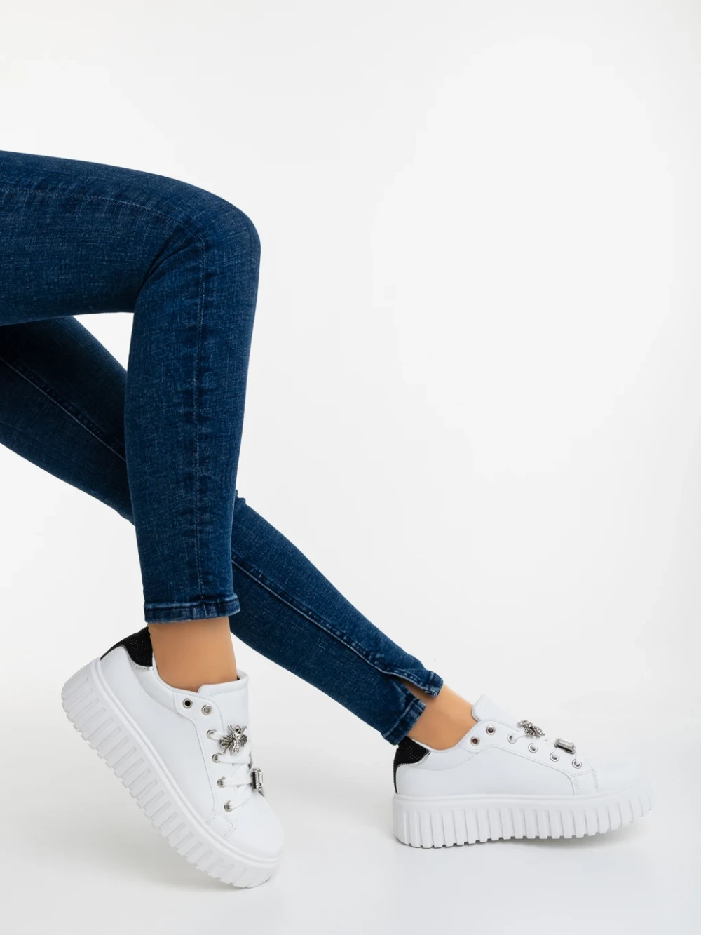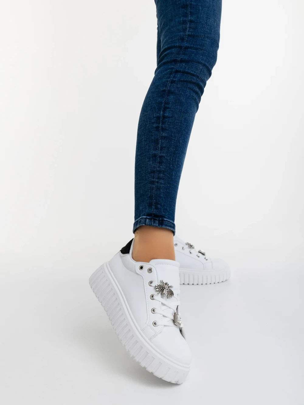 Дамски спортни обувки Seran бели със сребристо
