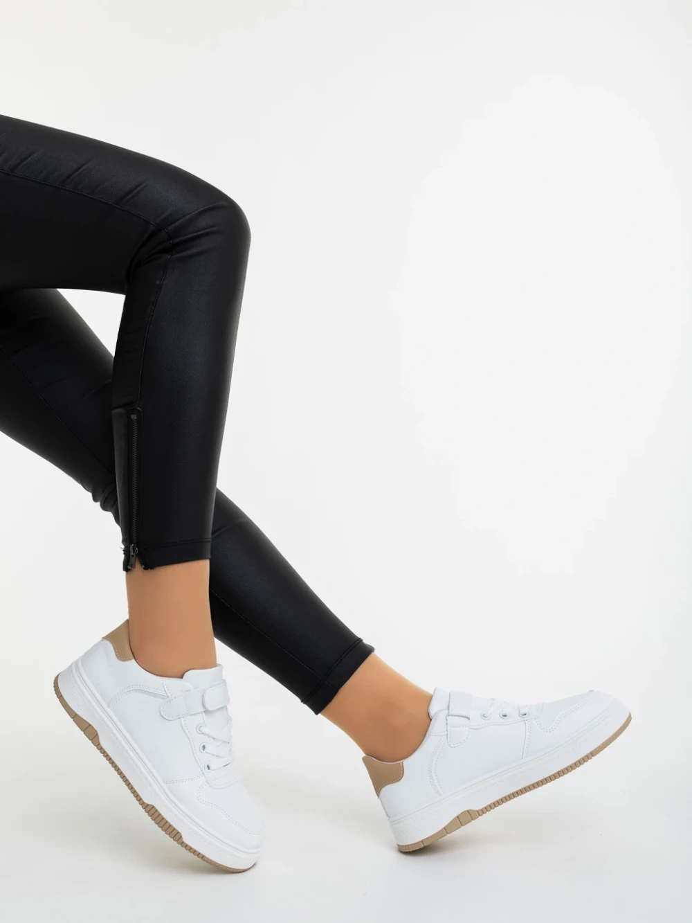 Дамски спортни обувки бежови от еко кожа и текстилен материал Souta