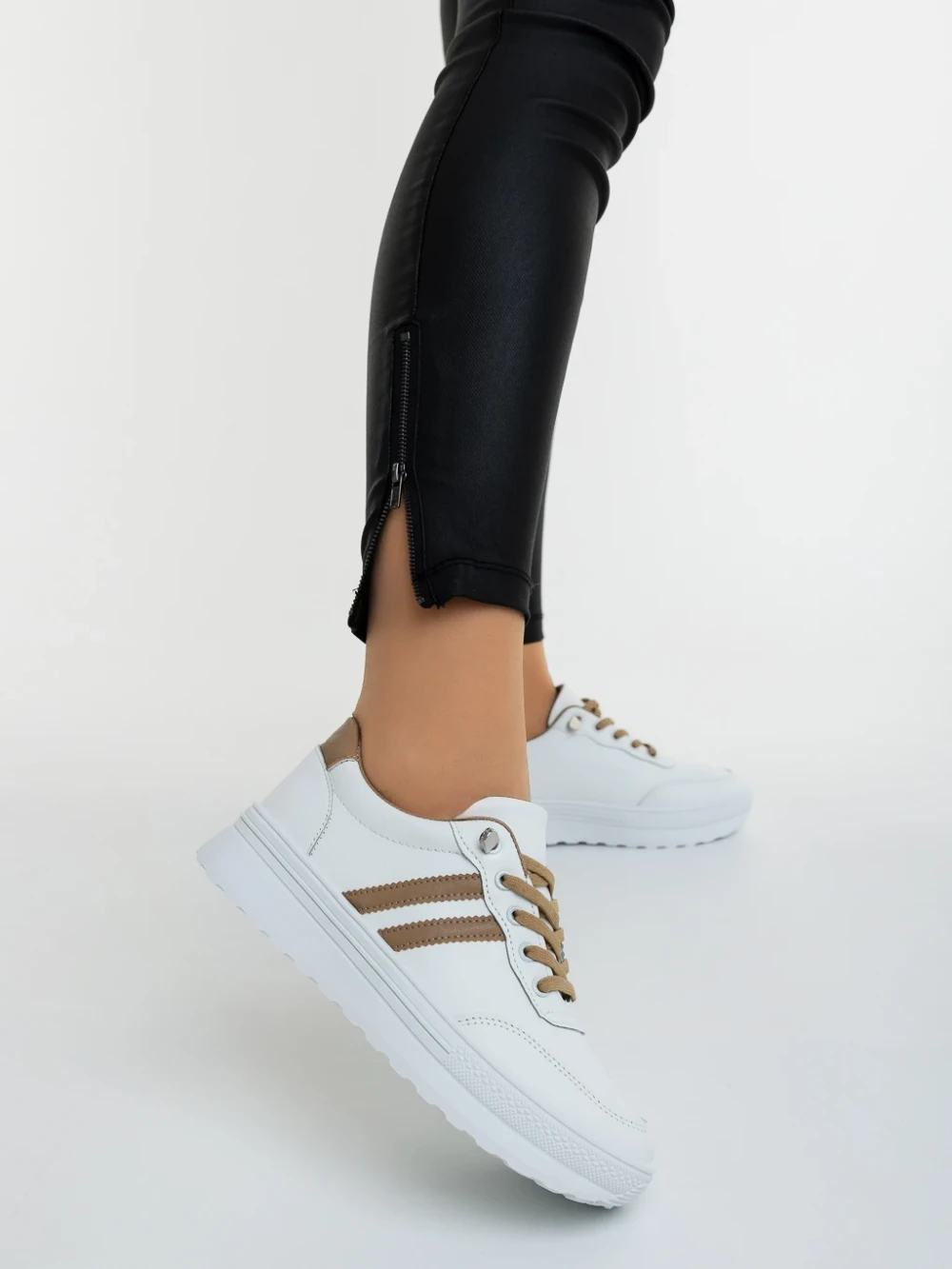 Дамски спортни обувки златисти от екологична кожа и текстилен материал Kiani