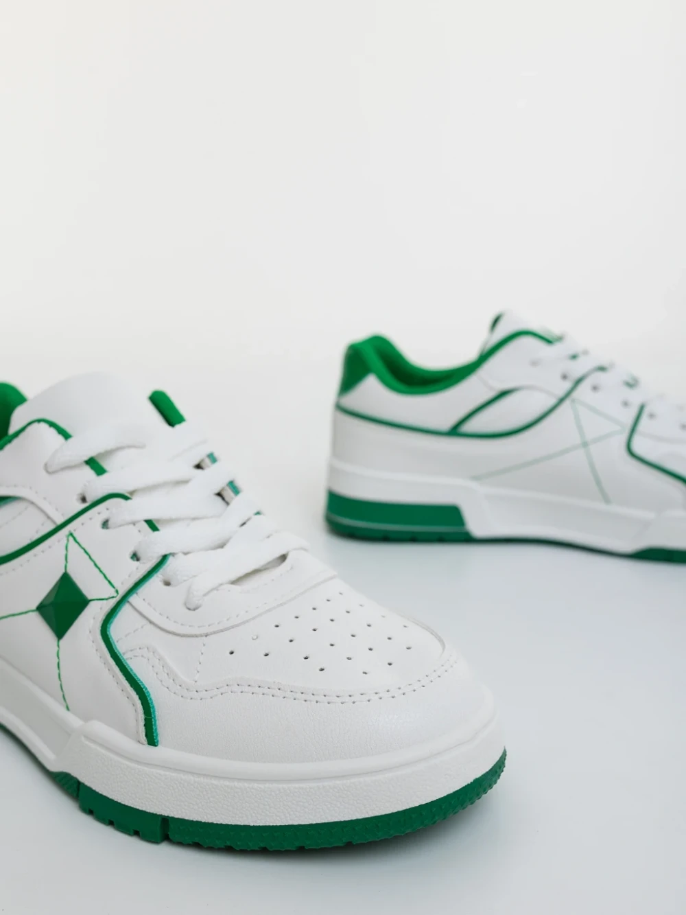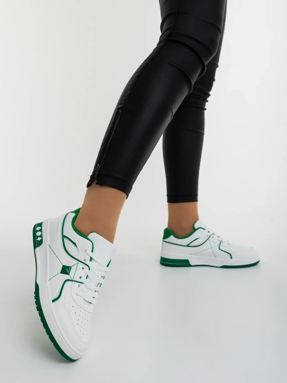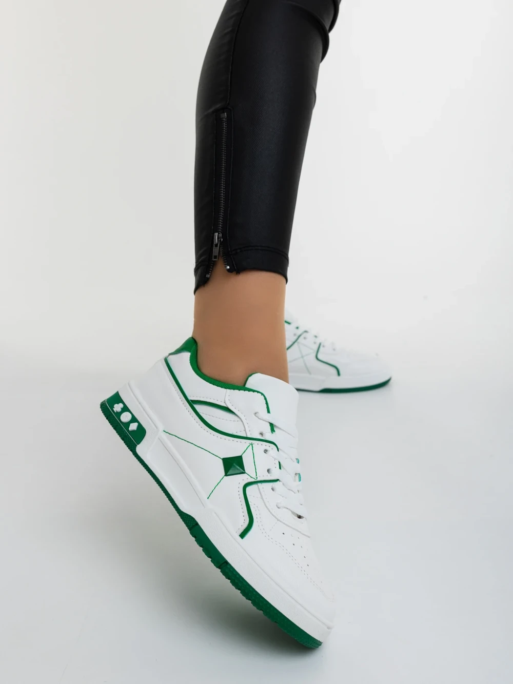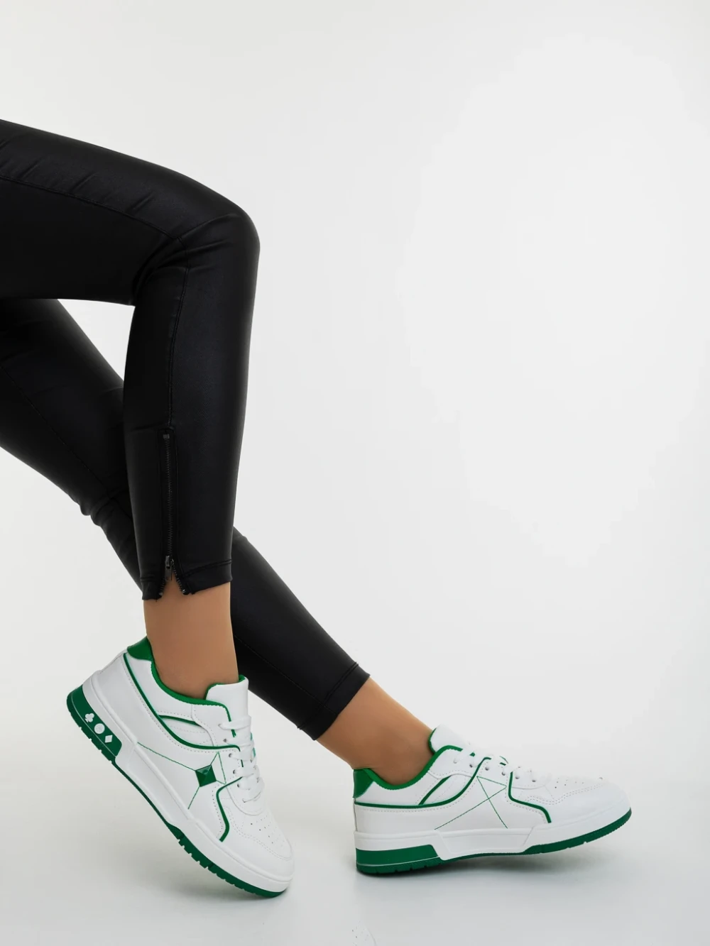 Дамски спортни обувки бели със зелено от еколгична кожа Dachara