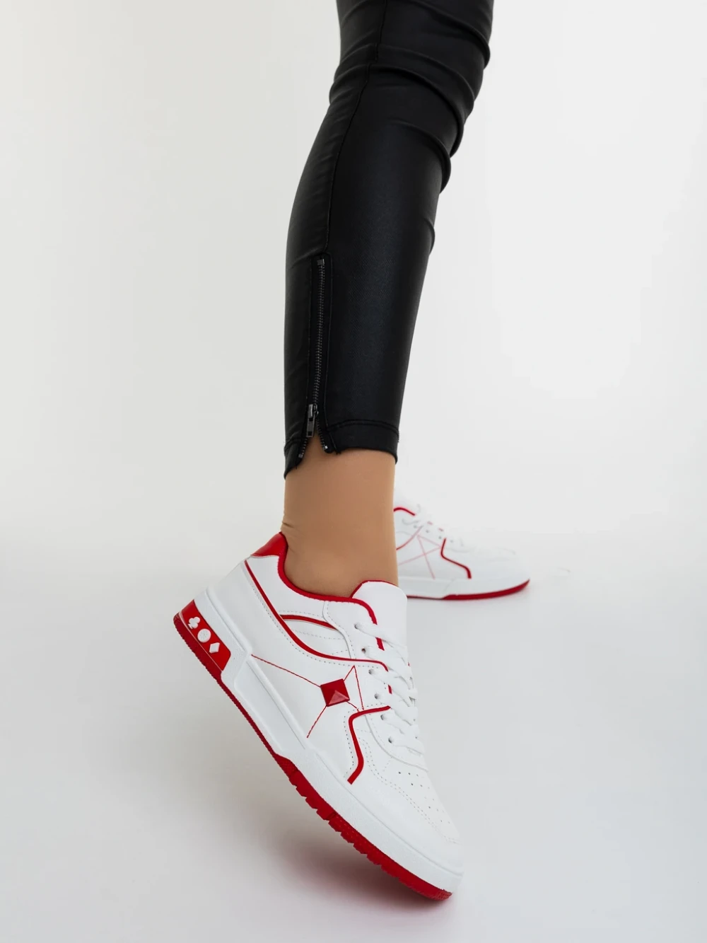 Дамски спортни обувки бели с червено от еколгична кожа Dachara