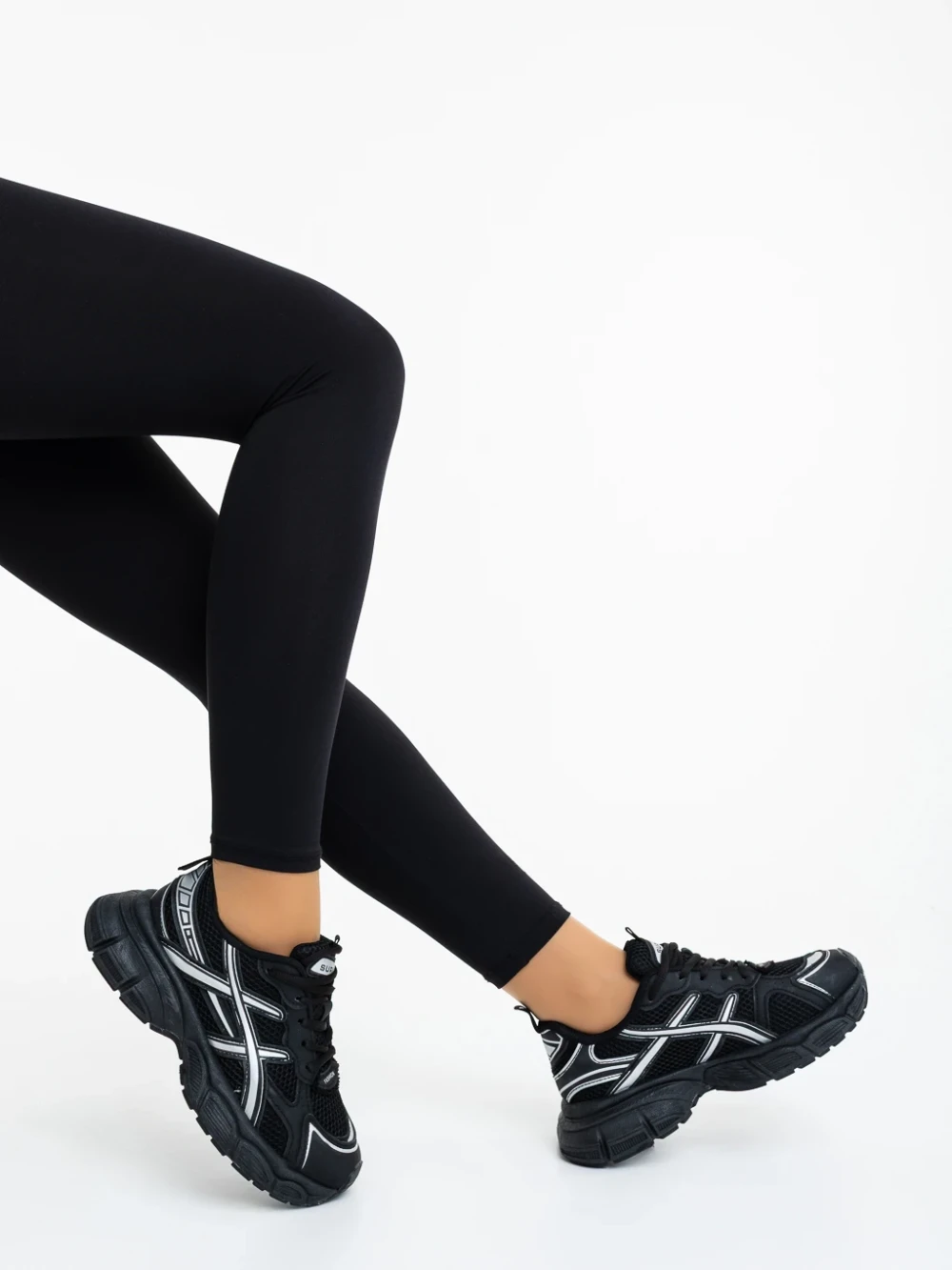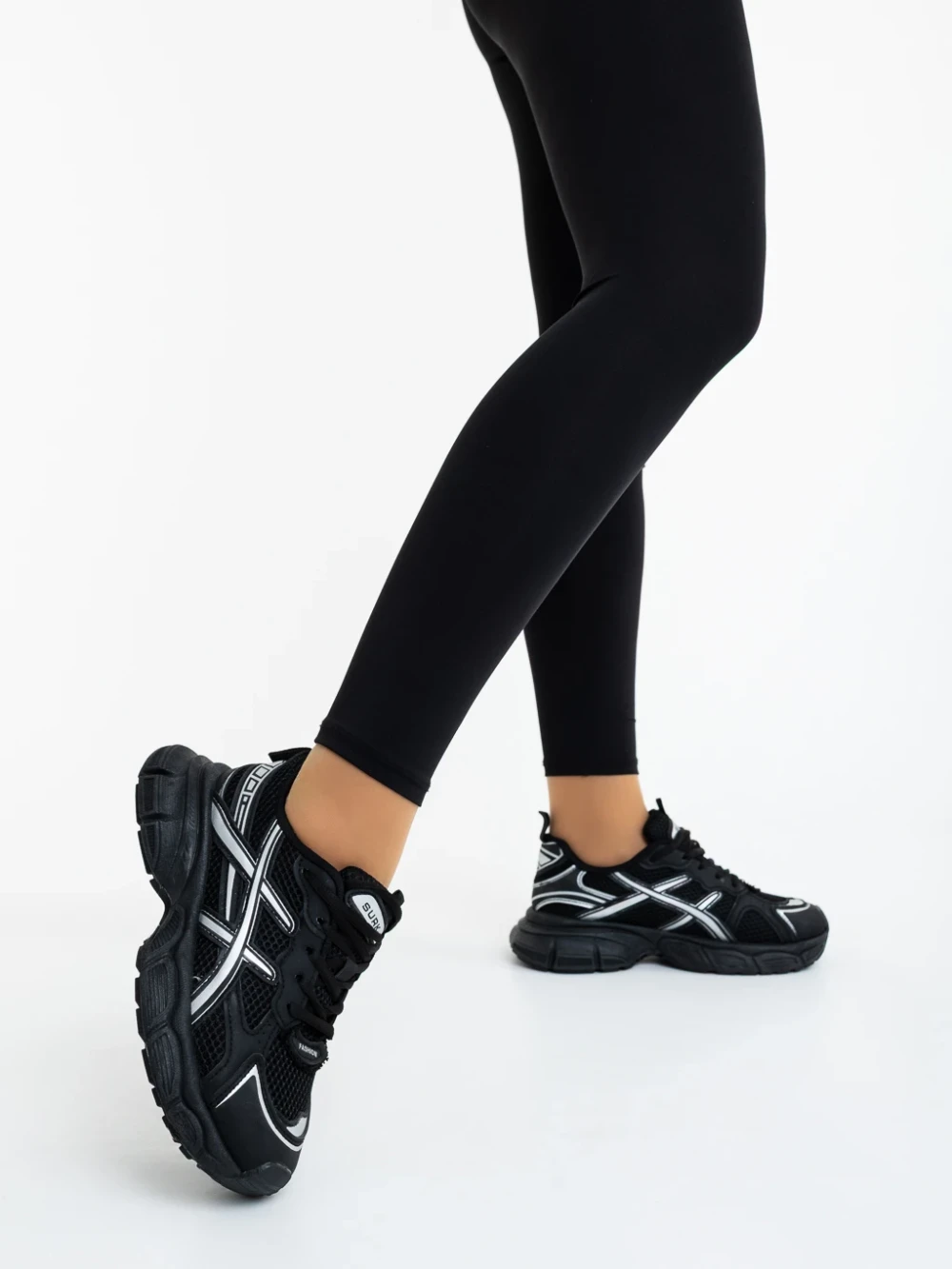 Дамски спортни обувки черни с бяло от текстилен материал Iselia