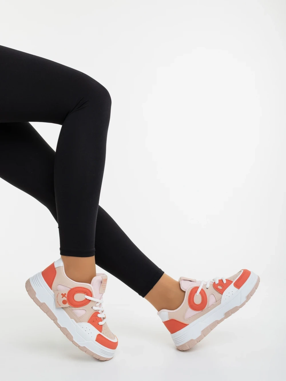 Дамски спортни обувки бежово с оранжево от екологична кожа и текстилен материал Demana Информация за продукта