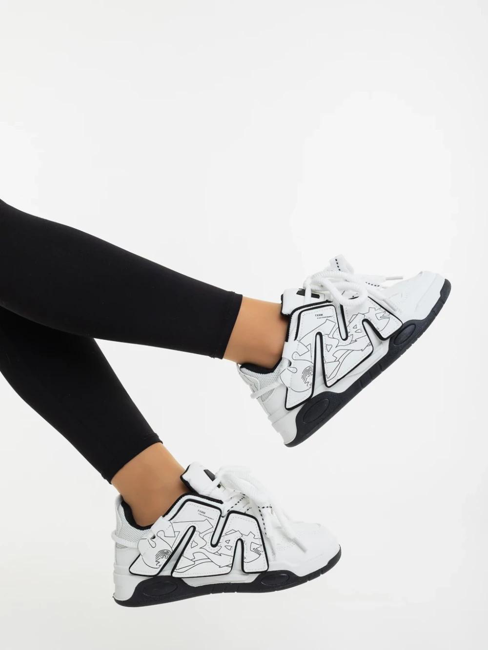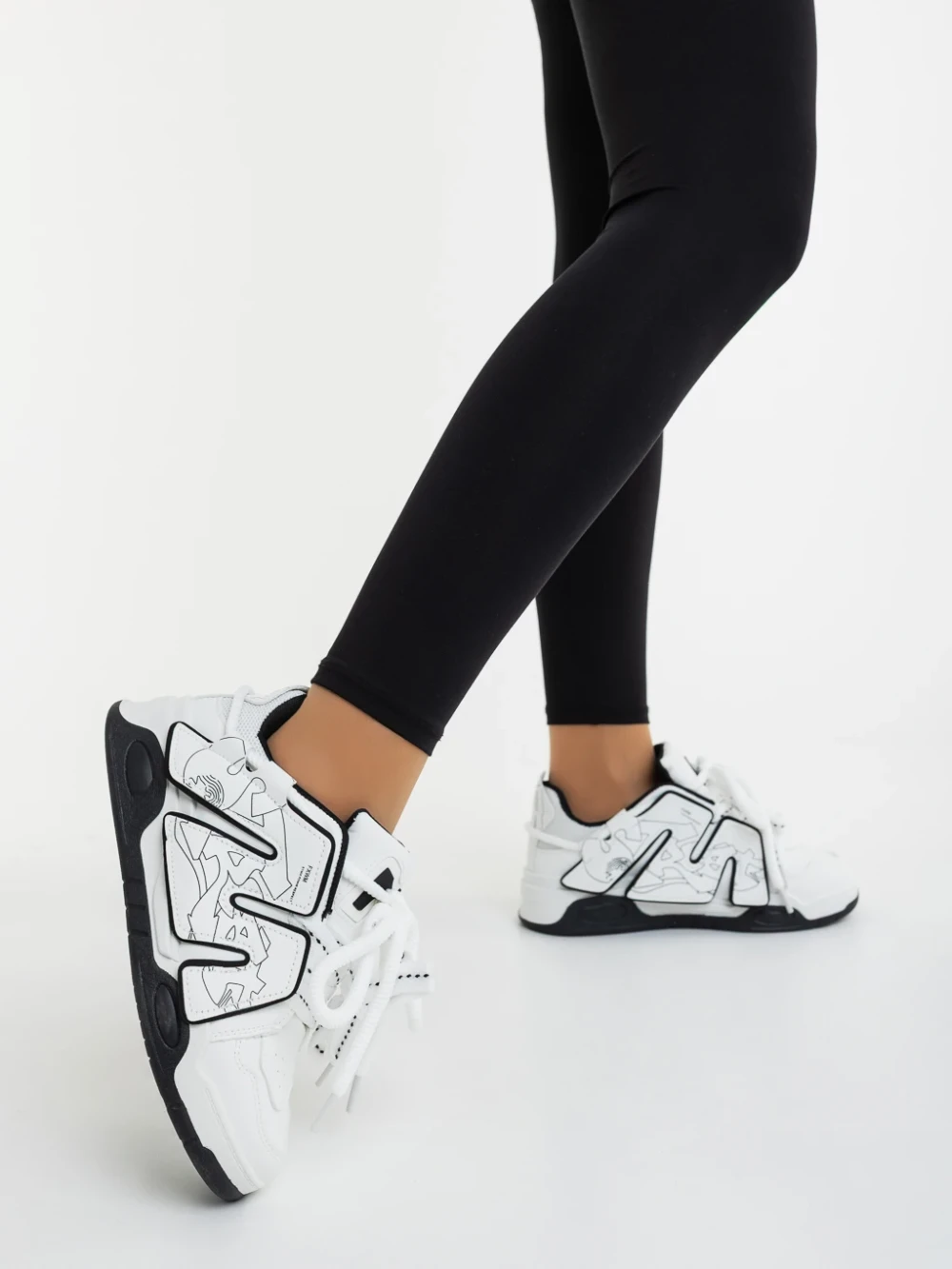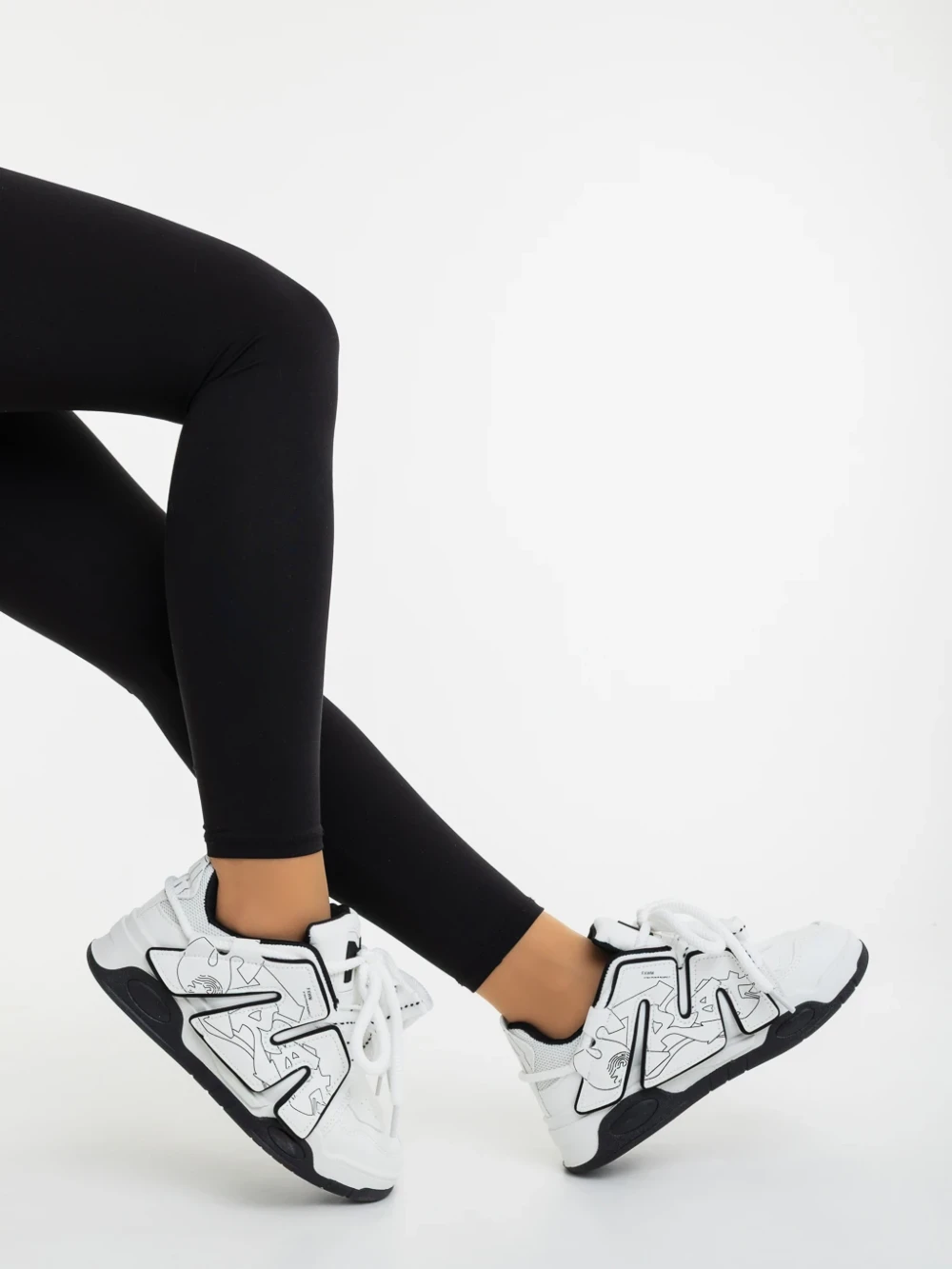 Дамски спортни обувки бели с черно от екологична кожа Osiana