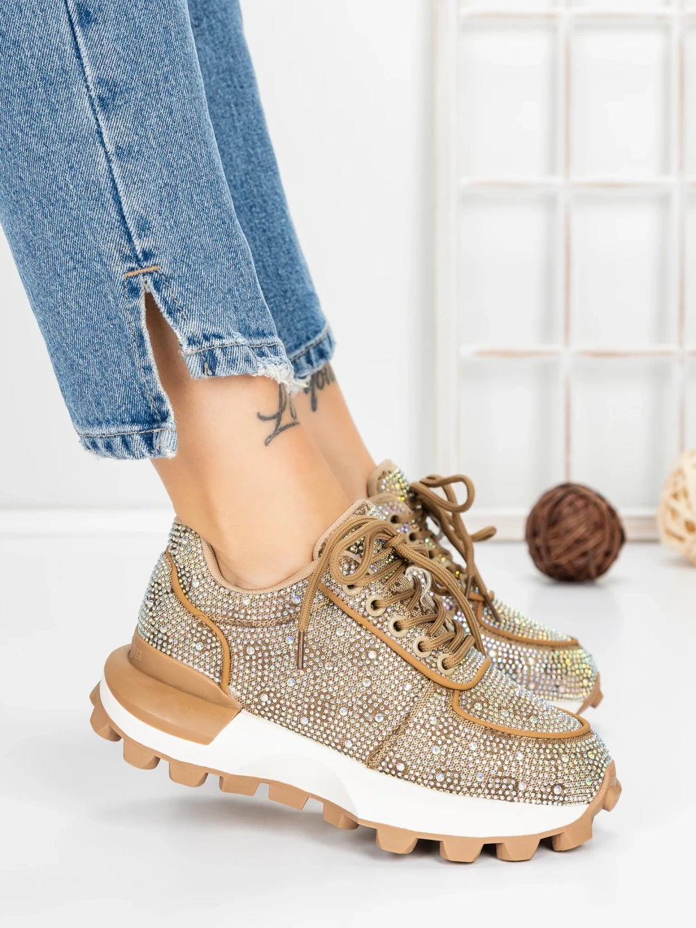 Дамски спортни обувки от естествена кожа 5SZ12 Бежово | Pantoful