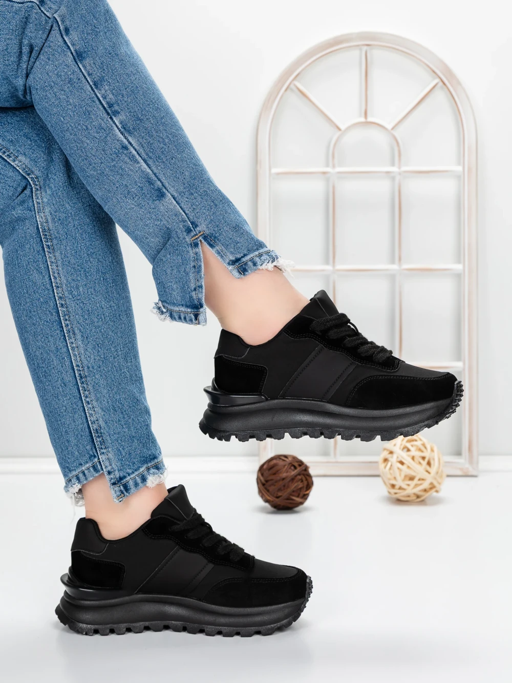 Дамски кецове с платформа 3591-8 Черен | Mei