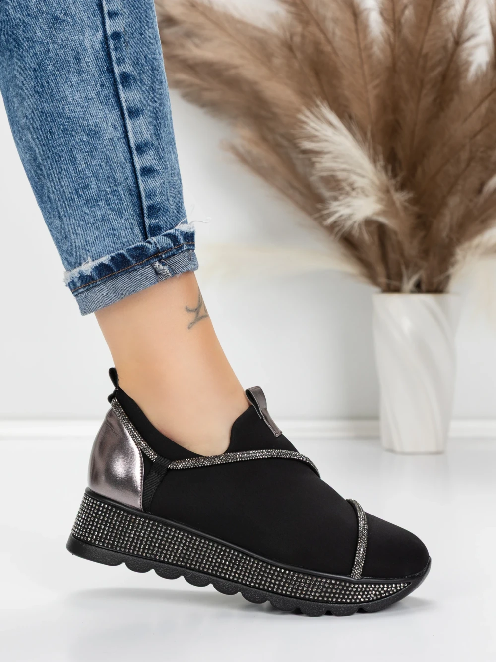 Дамски спортни обувки от естествена кожа 5WZ13 Черен | Pantoful