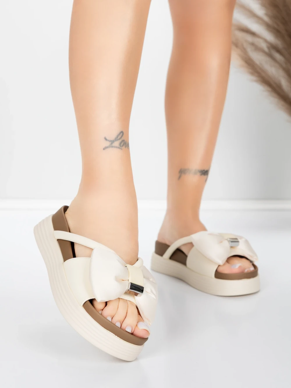 Дамски чехли от естествена кожа TP637-1 Кремав цвят | Formazione