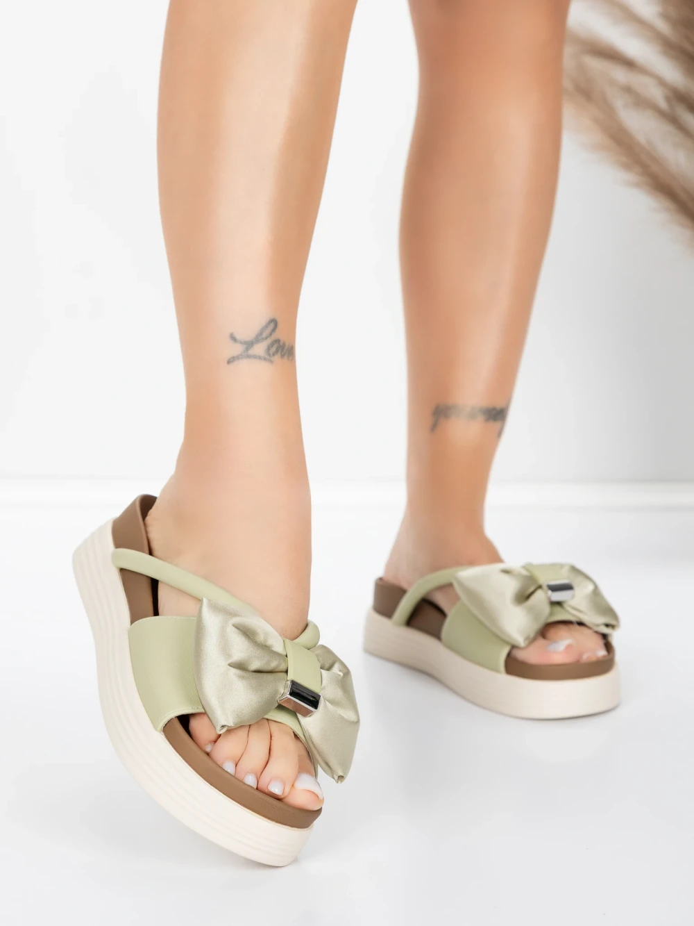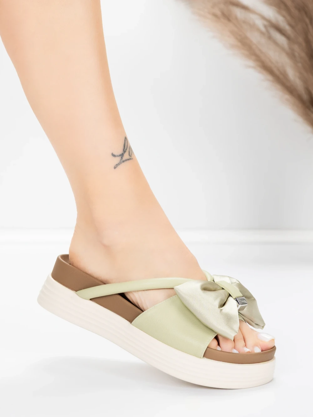 Дамски чехли от естествена кожа TP637-1 Зелено | Formazione